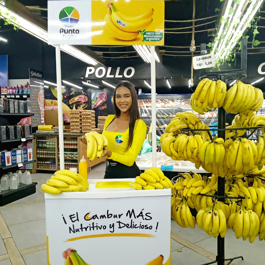 Consiste en realizar degustaciones de nuestro Cambur Punta Fruits en las principales Cadenas de Supermercado del país.